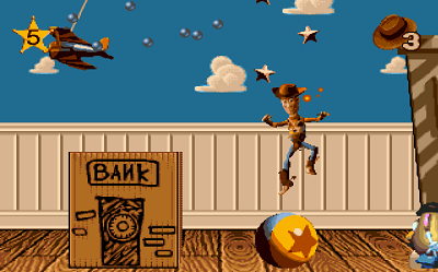 Toy Story - великолепная онлайн игра в смешанном стиле для 16-битной приставки Sega, в основу сюжета которой лег одноименный 3-D мультфильм от анимационной группы Уолта Диснея. Каждая последующая игра на платформе Genesis (MD2) как правило превосходила предыдущие в ом или ином аспекте. Здесь мы являемся свидетелями пика совершенства визуализационных параметров вышеупомянутой консоли.